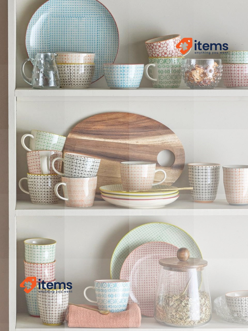 4 pieces (1 pack)Bloomingville Cups Carla - Tea cup with handleceramicred green blue orange
