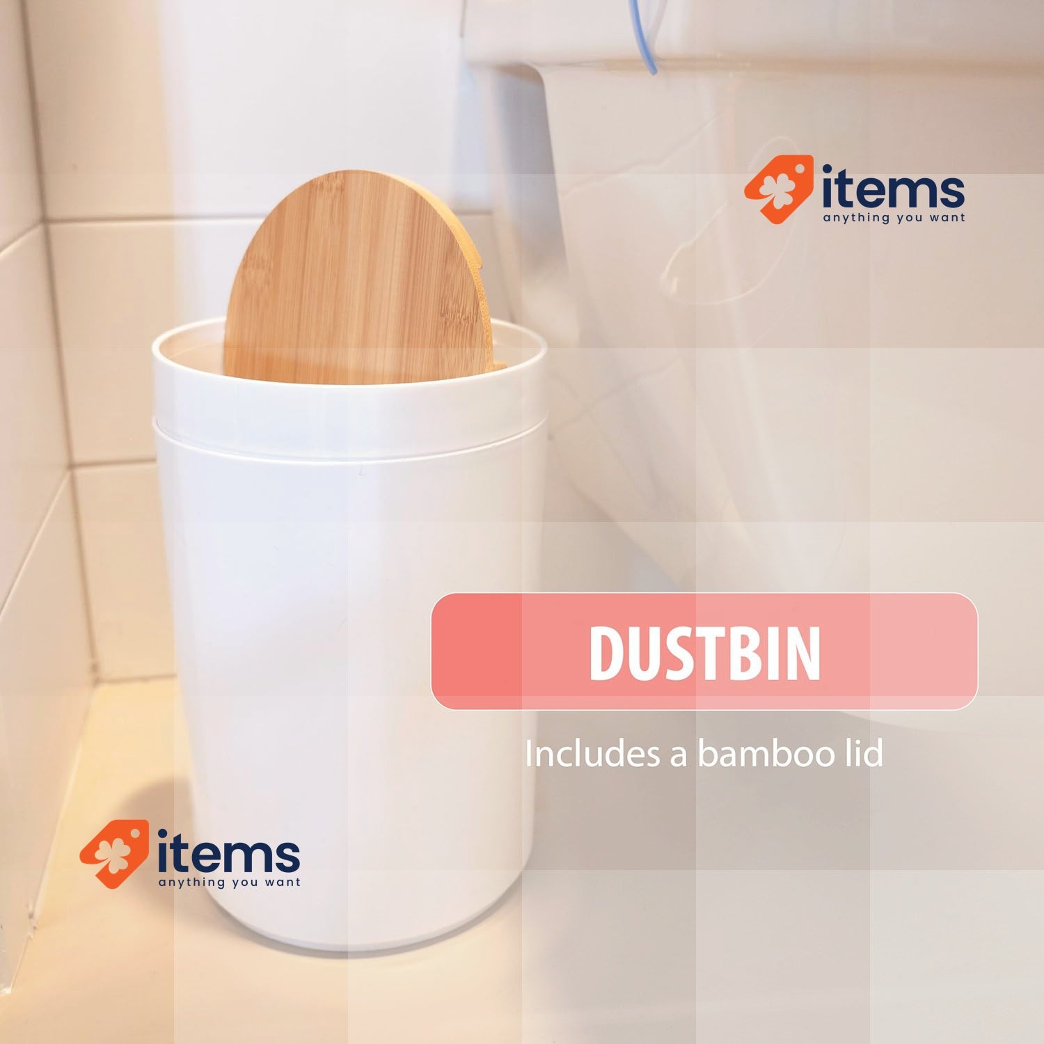 alpina Bathroom Set in Bamboo Wood and Plastic White w/ Toilet Brush Holder 6