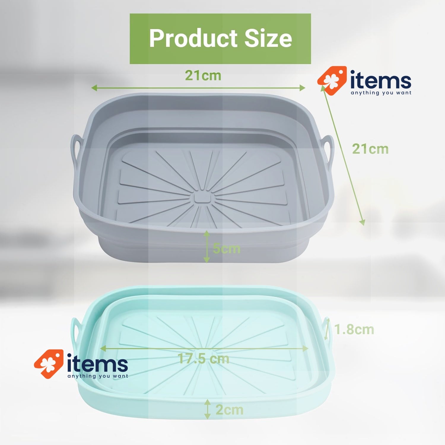 Alyvisun 2 Pieces Bandeja Accessories for Reusable Oil Frying Recipients Square Cart Utensils for Air FryerBlue+GrisMicrowaveOvenSilicone
