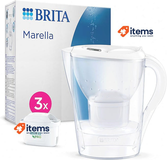 BRITA Marella Water Filter Jug White (2.4L) Starter Pack incl. 3x Clear
