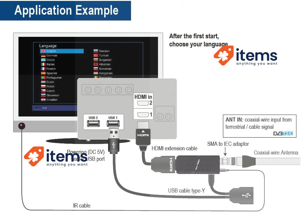 EDISION Nano T265+ Receptor dongle HDMI Terrestre TDT DVB-T2 y por Cable DVB-CFTAFull HDH265 HEVCHDMIMando a Distancia Universal 2en1PVRSensor IRSoporte USB WiFiUSB