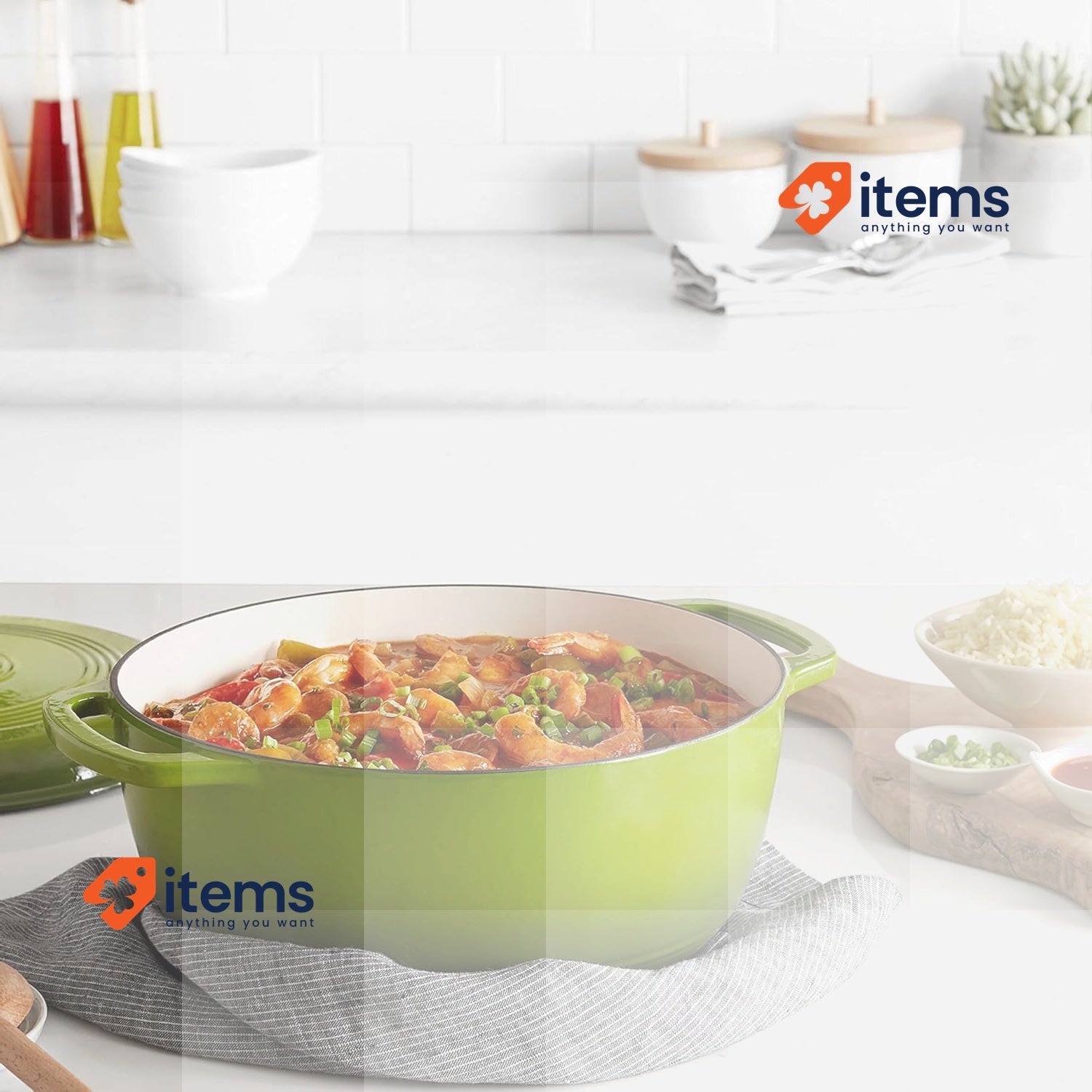 Enameled Cast Iron Round Dutch Oven with Lid and Dual Handles 6.9 L, Green