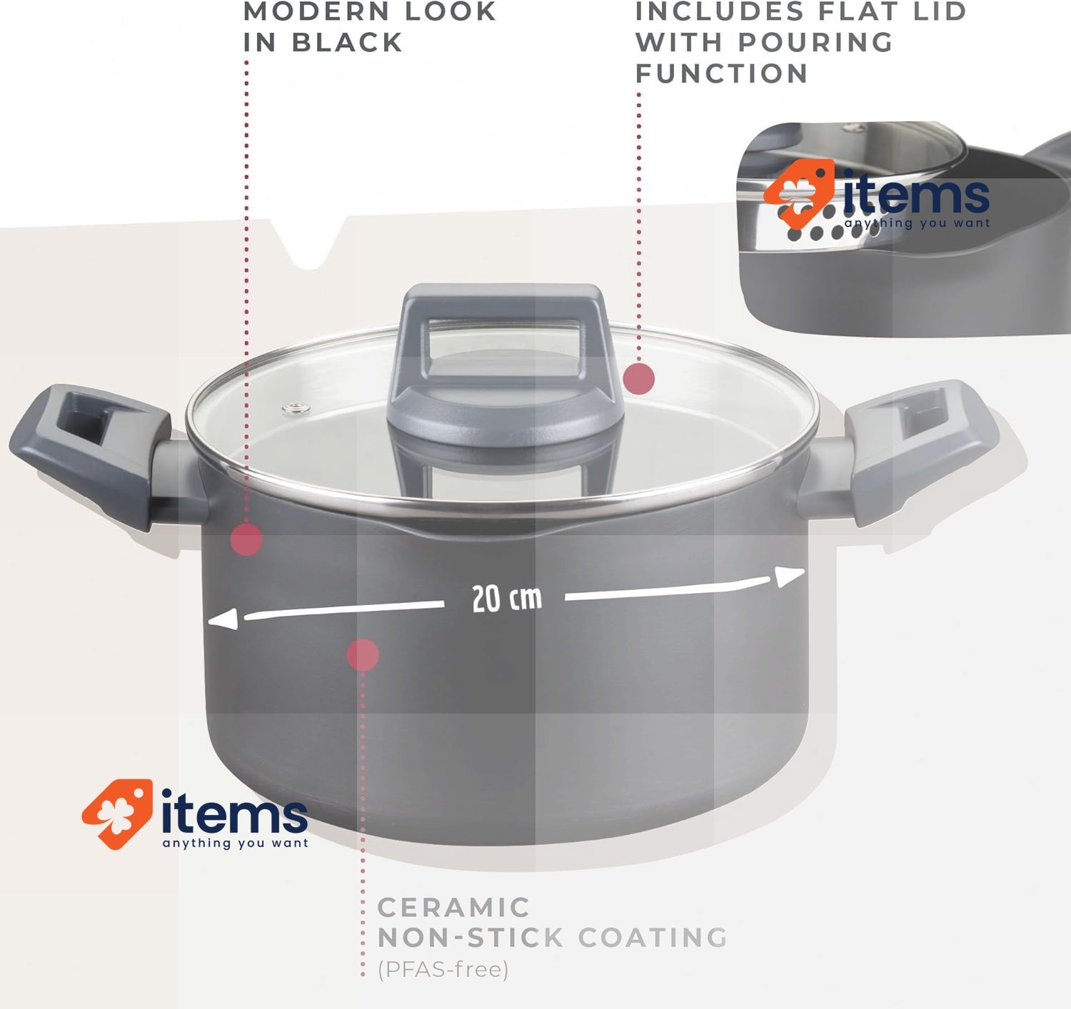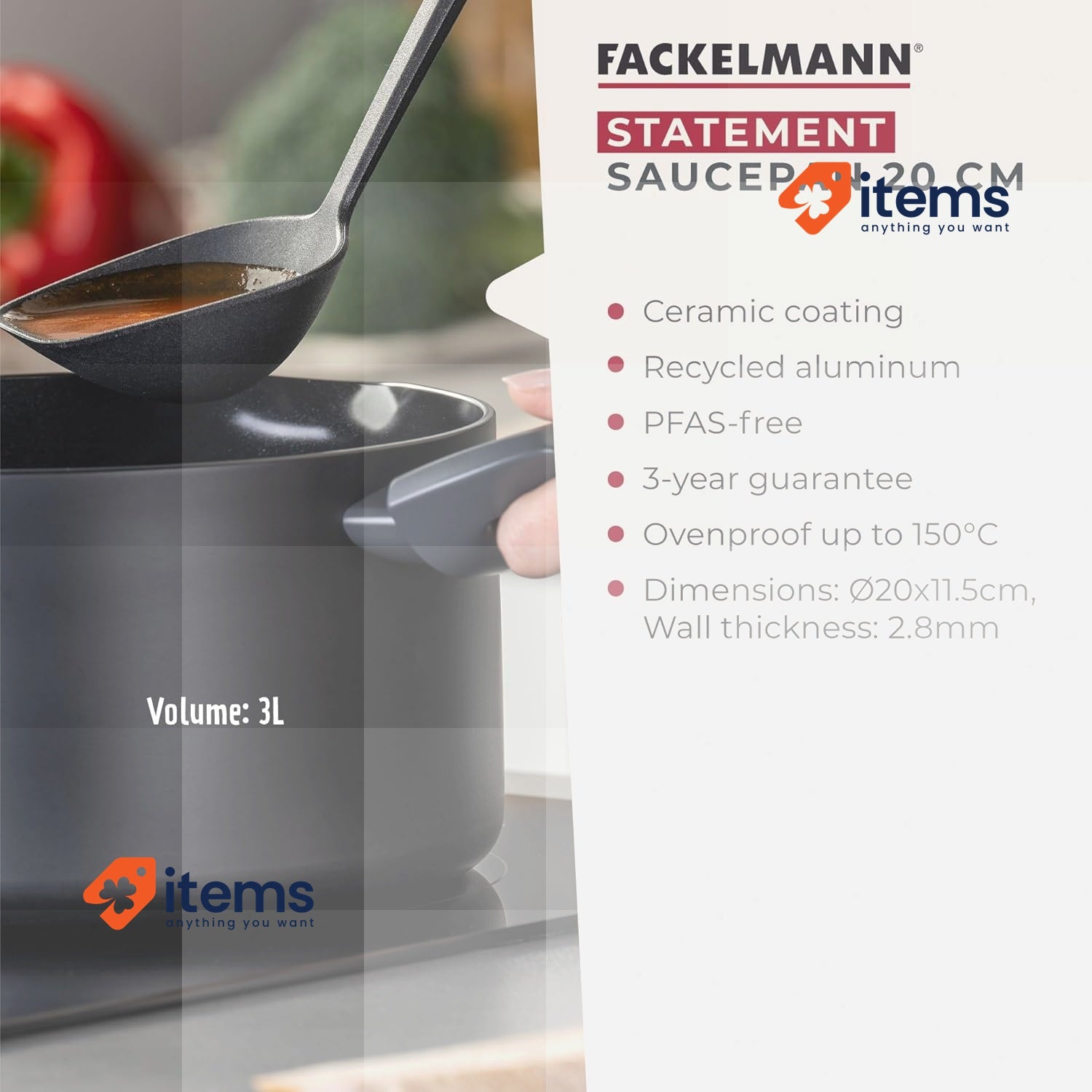 Fackelmann Kochtopf Statement 20cm – Pot with ceramic coating – Recycled aluminum with non-stick coating – PFAS-freeFor all herd types including inductionheat-resistant handle