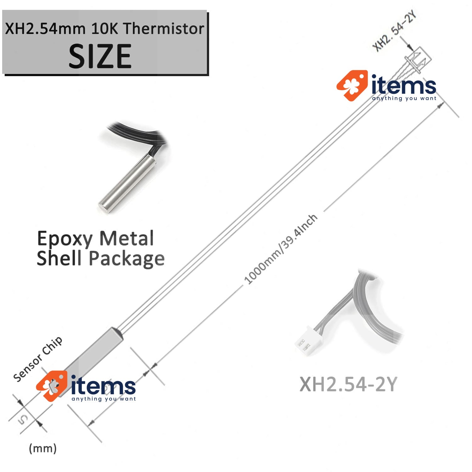 Fajoeda Pack of 8 NTC Thermistor 10K Temperature Sensor Probe Stainless Steel - Black / Fajoeda is backordered and will ship as soon as it is back in stock.