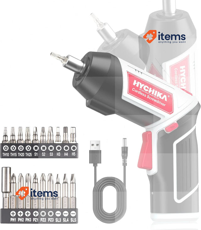 20 AccessoriesCharge USB CableElectric screwdriver 6Nm Screwdriver Battery 3.6V 2.0 AhHYCHIKA Electric screwdriverLED LightScrewdriver Battery for Home Repairs