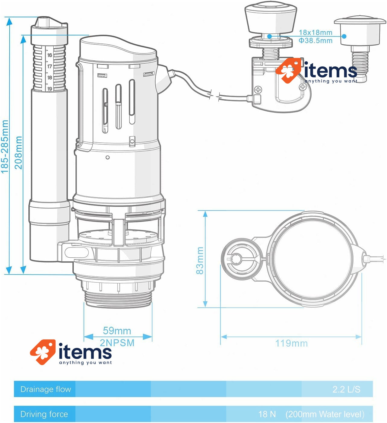 double flushing valve 3/6 literdrain valve WC flushingIbergrif Universal cable mechanism for toilet flushing