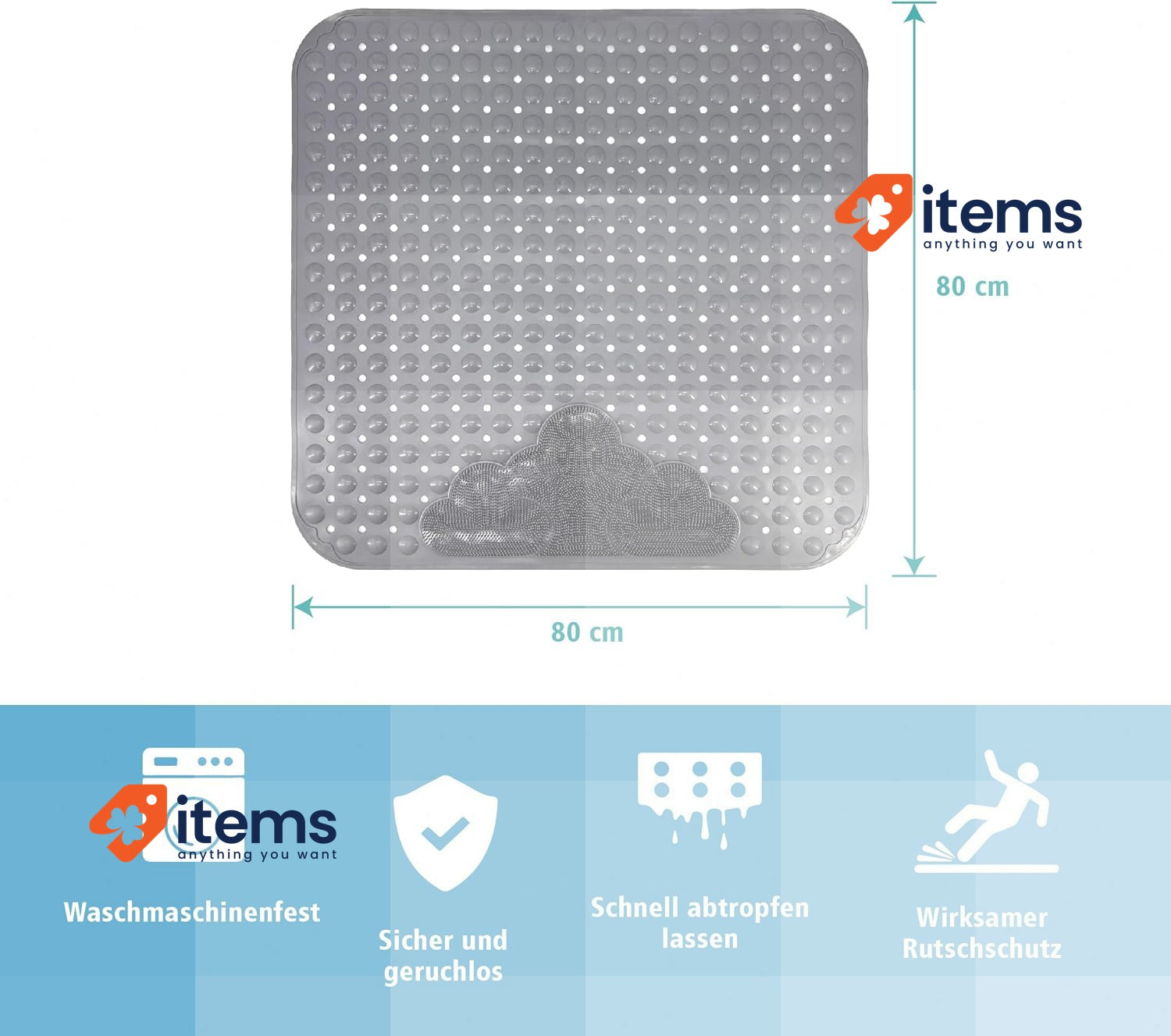 80x80cm anti-slip mat shower with suction cupsanti-slip shower matgreyINCETUE shower mat non-slipshower insert non-slip for children and old