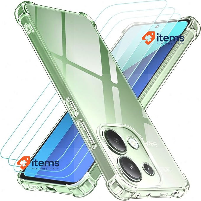 ivoler 4 in 1 Cover for Xiaomi Redmi Note 13 4G (No for Redmi Note 13 5G) with 3 Pieces Tempered CrystalSoft TPU Silicon Anti-Choques CaseTransparent Case Protector Antigolpes Case