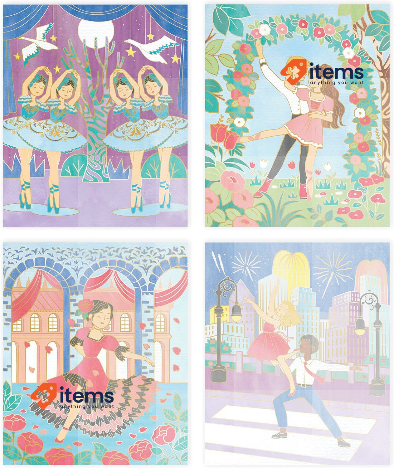 J07964Janod - Aquarellmalerei Dancers - Les Ateliers du Calme - Creative Hobby Children - 4 Images with Golden Contours - Fine Motors and Concentration - From 6 years