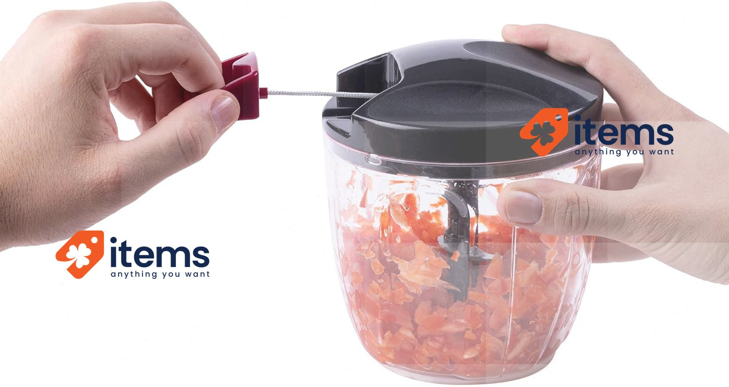 JATA HOGAR HMAQ4506 - Cuerda manual for all types of food. 4 cut heights. Stainless steel blade. 900 ml capacity. Includes lid and whisk
