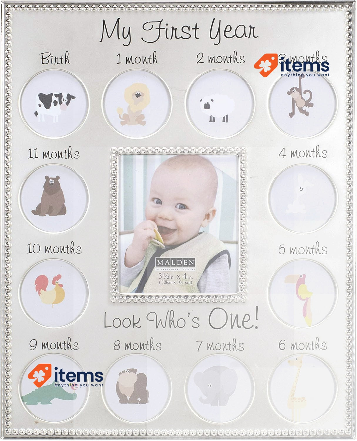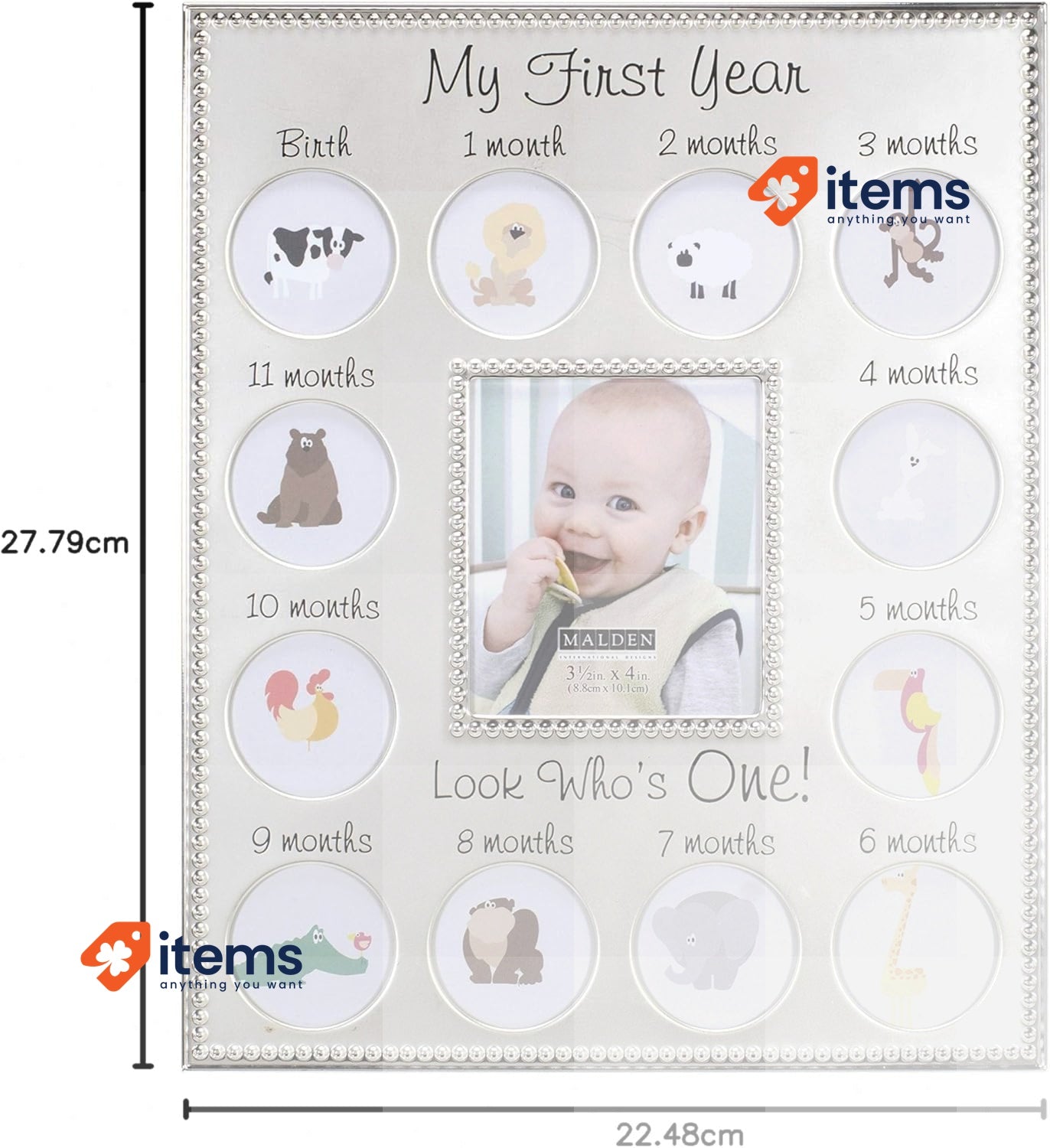 Malden Designs My First Year Baby Photo Frame Silver - Silver / Malden is backordered and will ship as soon as it is back in stock.