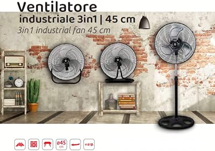 3 Metal Pale3 Speed60 WColor BlackInstallable on EarthMelchioni Family | Industrial Fan 3 in 1MF1712TRIOOscillation FunctionSilentWall or Table