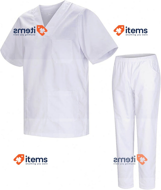 MISEMIYA Unisex Sanitary Uniform KZ-817-8312-WHITE - WHITE / MISEMIYA is backordered and will ship as soon as it is back in stock.