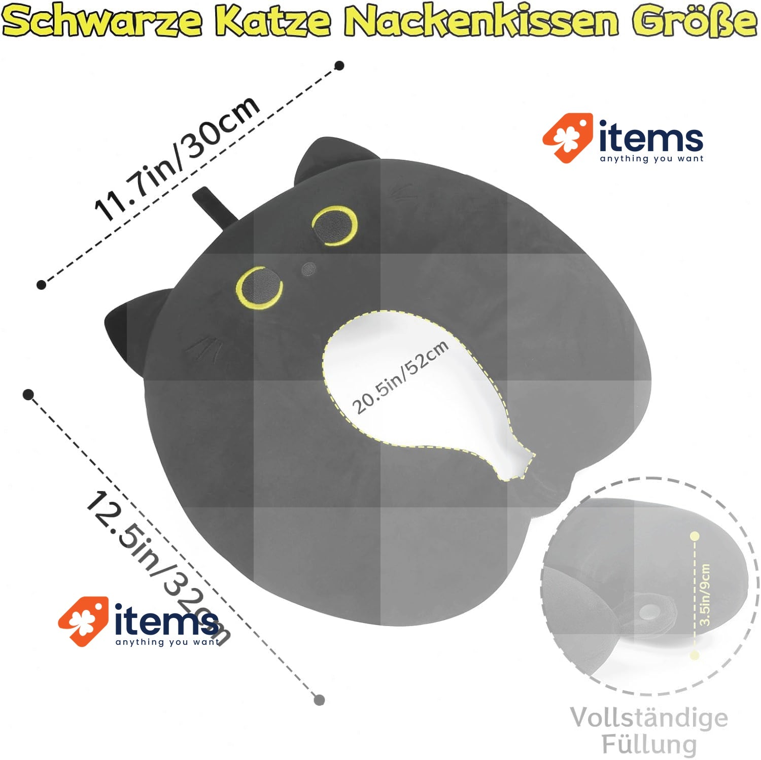 MUFEIRUO Black Cat Naked Cushion ChildrenNeck cushion for Car Cute Kids U-shaped Necking for Long TravelSoft Animal Travel Cushion Kids Sleeping Naked Cushion Aircraft