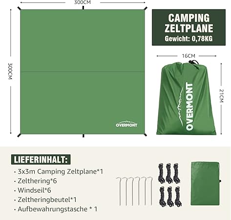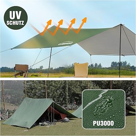 OVERMONT Tent tarpaulin For Outdoor Hiking Green 3m x 3m
