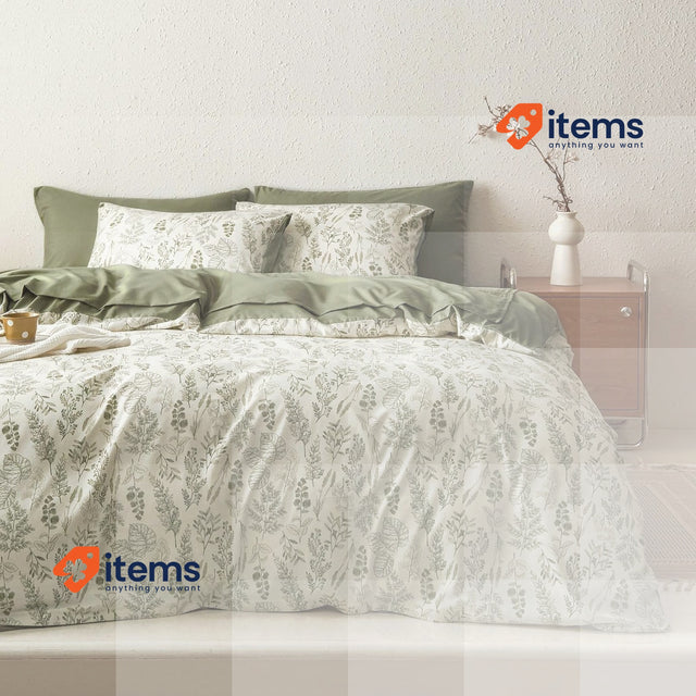 Sedefen Bed Green Olive White Leaves Set With Pillowcases 200x200 80x80cm - Green Olive White Leaves / Sedefen is backordered and will ship as soon as it is back in stock.