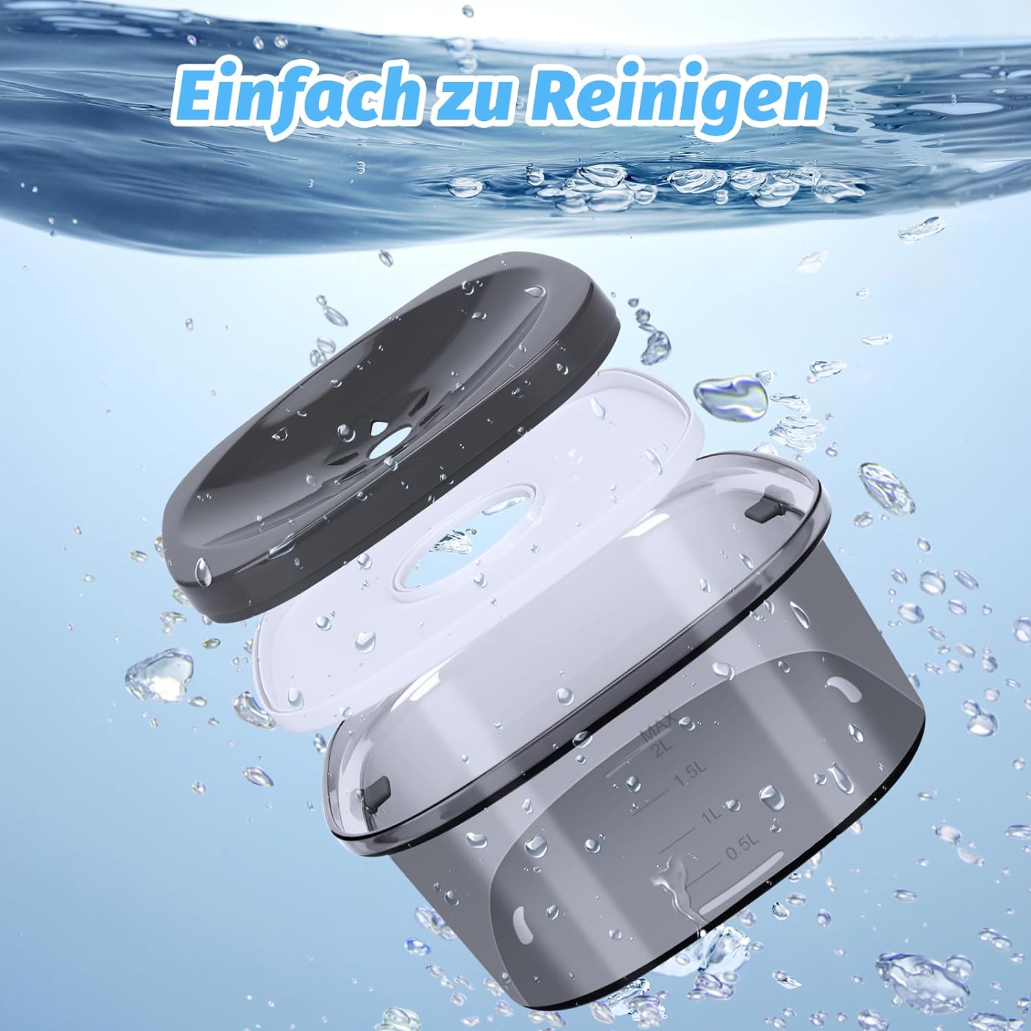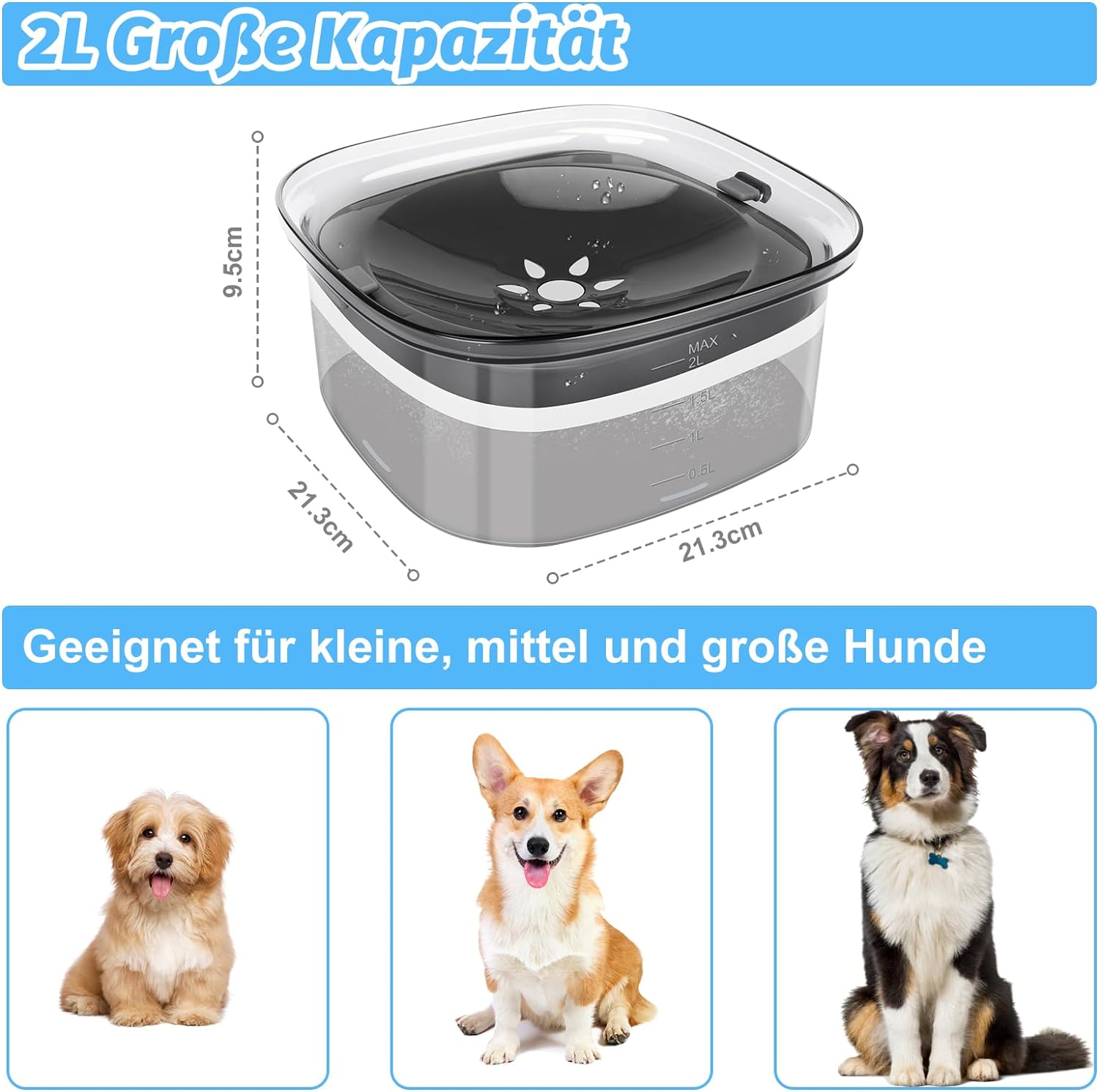 2L large capacity – 2L/70 oz large capacity dog water bowl perfectly meets pet daily drinking needs, no need to refill the water frequently, keep your pets drink enough water every day, Suitable for small, medium and large dogs as well as families with multiple pets, Transparent design: the transparent dog drinking bowl is helpful to check the water quality, and the water level indicator allows you to see how much water your pet drinks, So you can easily identify when to switch to clean water and have your pet's water consumption under control, Design for slow drinking – the design of the automatically adjustable floating disc can slow down your pet's drinking speed to avoid a wet mouth and prevent swallowing, It also helps to prevent dust, dirt and pet hair from falling into the water to provide your pet with clean water, Leak-proof and non-slip – the widened bowl opening, the floating disc and the silicone plugs effectively prevent water leakage and keep the floor clean, Non-slip rubber on the bottom that prevents the dog from pushing the bowl around