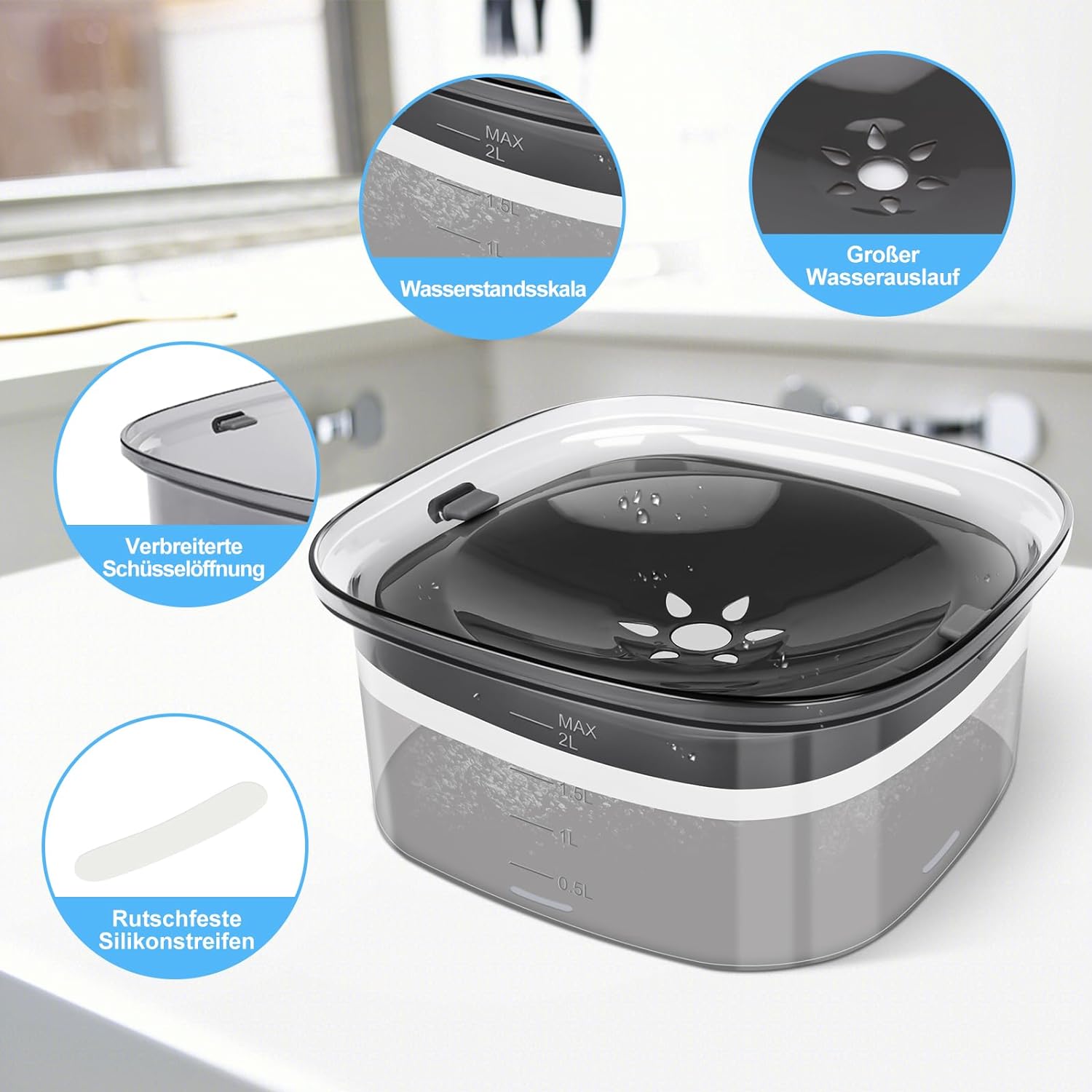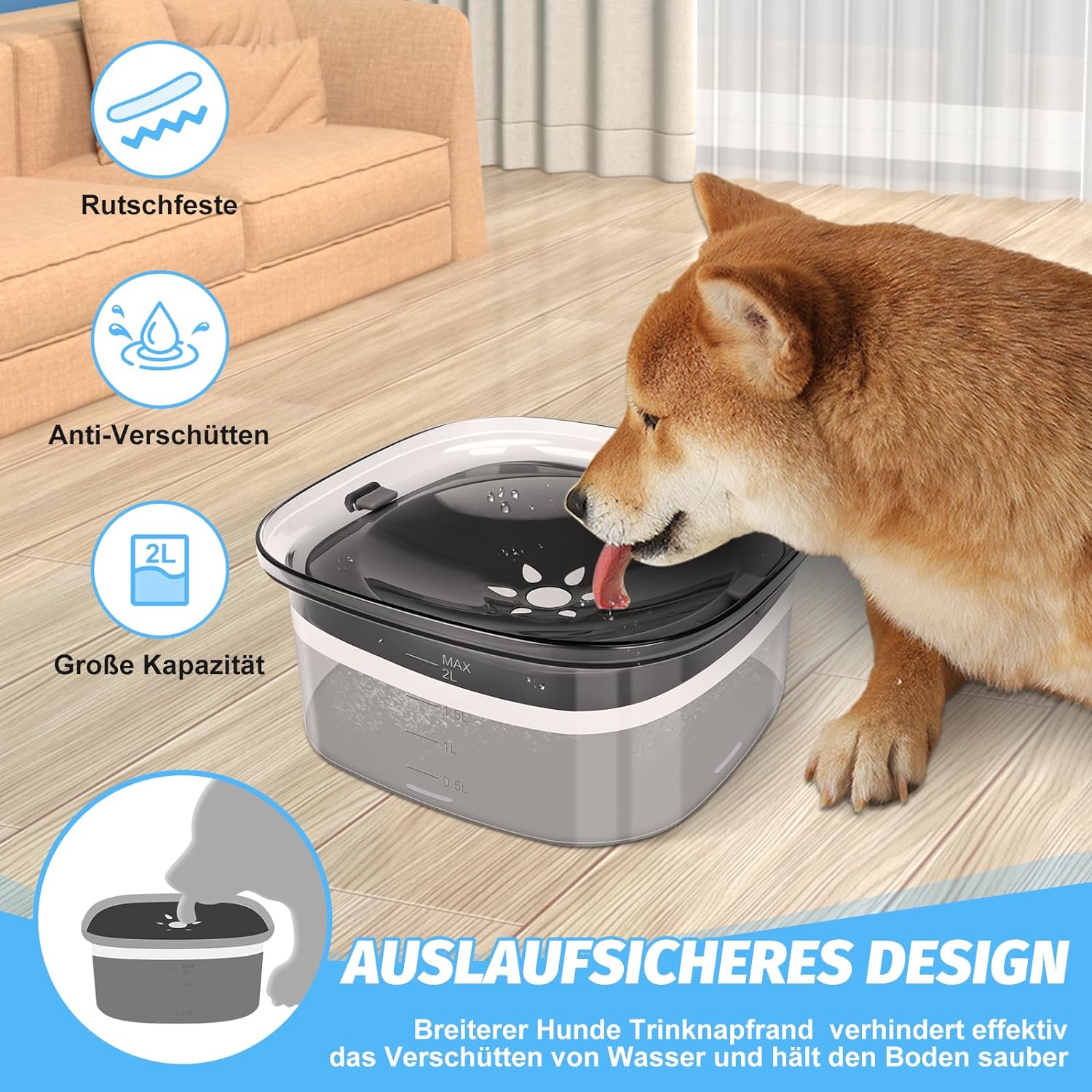 Chien Eau Cat Range Anti Overflow Large Capacity 2LTAVADA Chien Anti Eclaboussure Water Range