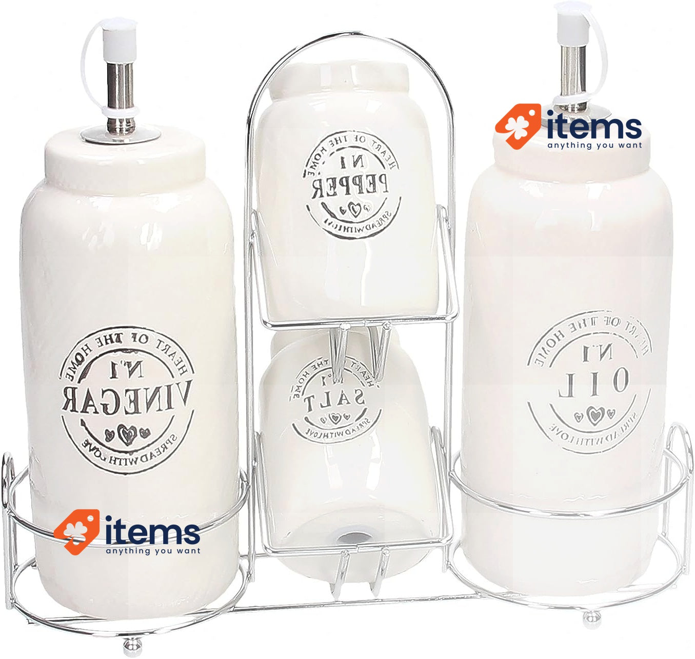 Tognana Countryside Menage Oil, Vinegar, Salt, Pepper, Ceramic, White 1 is backordered and will ship as soon as it is back in stock.