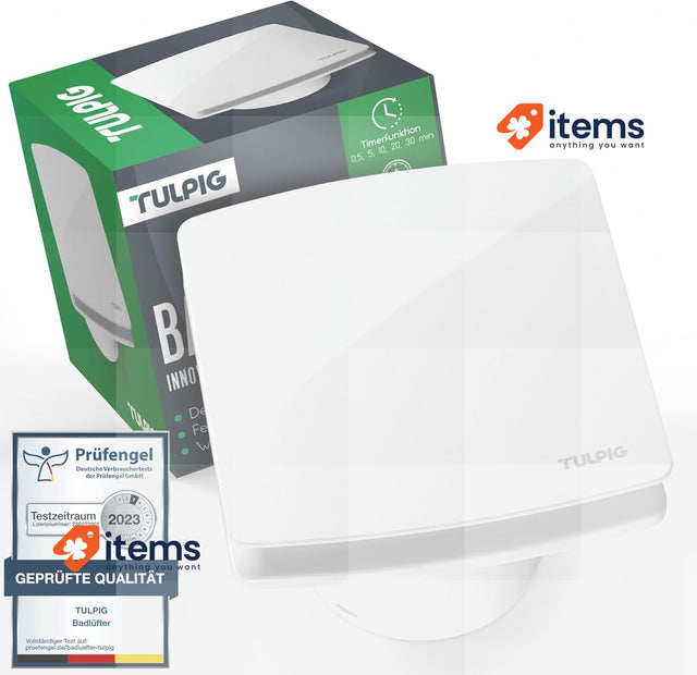 Ceiling & Window MountingTULPIG Bathroom Fan 100mm - Noise Bathroom Fan [34dB] - Bathroom Fan with Moisture Sensor & Timer Function - Bathroom Fan with Rear for Wall