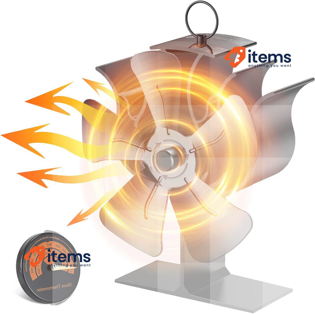 Viitech 2024 Log Stove Fan - Silent 5-Blade Wood Burner Fan with Thermometer