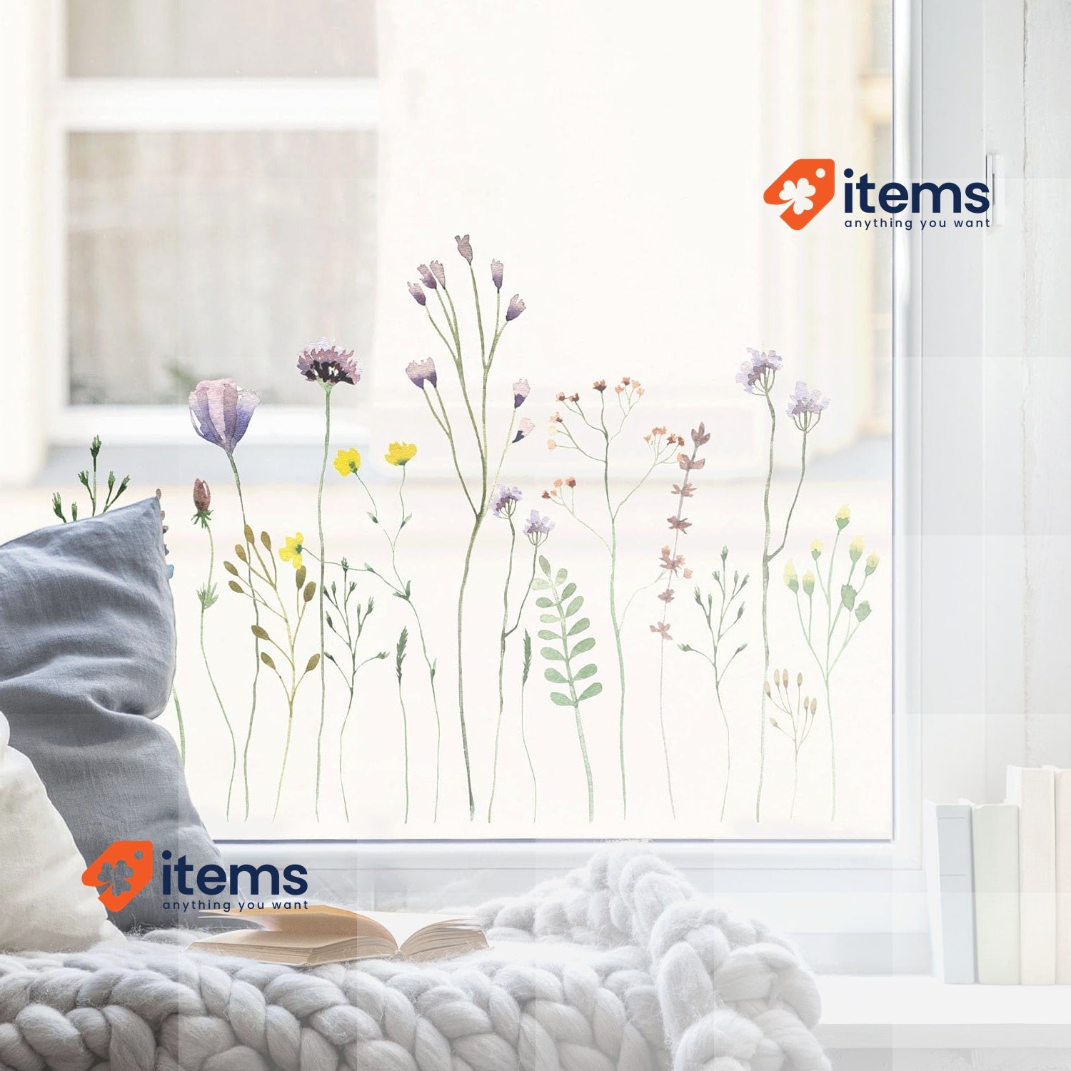 reusable – spring deco windowspring picture windowWall decal Loft Window Pictures Spring with Wildflower meadow spring motif – A3 bowwindow deco springwindow foil spring